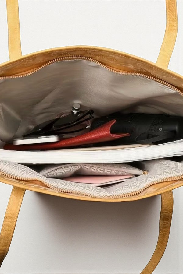 Classic, bold, and endlessly versatile—this black tote bag is a must-have staple. Featuring a sleek, glossy black PVC exterior, it’s water resistant to help protect your essentials from spills and light rain. The spacious interior offers plenty of room for everyday necessities, whether you’re headed to work, running errands, or traveling. Finished with comfortable shoulder straps and a minimalist “TOTE BAG” detail, this carryall delivers effortless style with practical functionality.