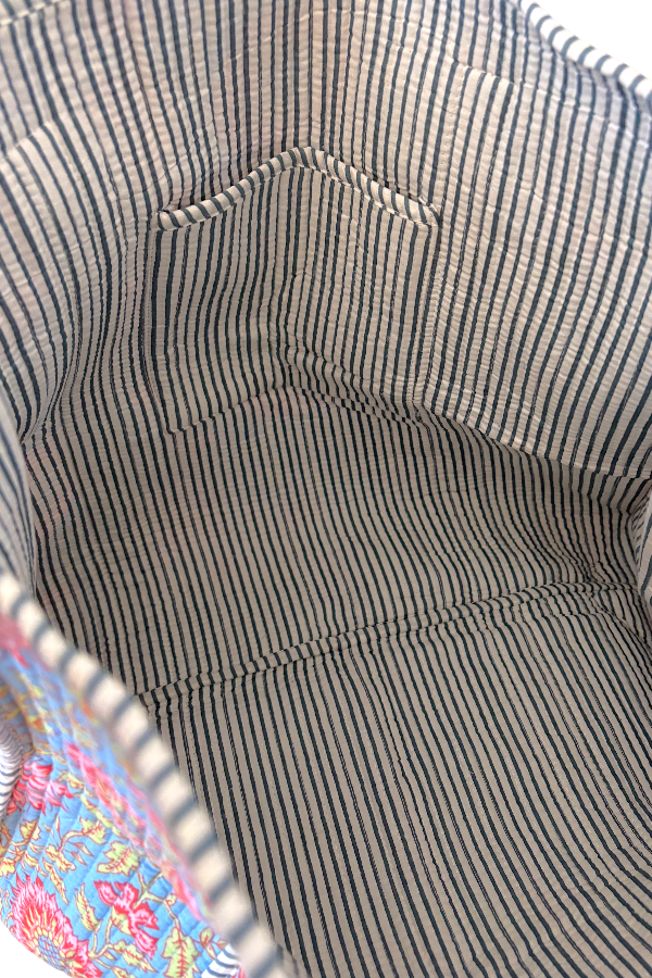Effortlessly soft and beautifully subtle, this muted blue and pink floral tote is the perfect companion for the season ahead. With its cozy color palette and delicate floral pattern, it’s made for those crisp early fall days when summer still lingers. Quilted for comfort and style, this bag offers plenty of room for your daily essentials while bringing an understated elegance to any outfit. Whether you're heading to work, brunch, or a weekend getaway, this tote blends seamlessly into your autumn wardrobe.