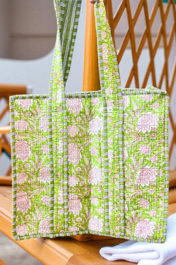 Brighten up your day with our green and pink floral patterned tote bag! This cheerful carryall is the perfect blend of fresh, feminine, and functional. Covered in a playful floral print, it’s roomy enough for all your daily essentials—whether you're headed to the farmer's market, the gym, or a weekend getaway. Lightweight yet durable, with sturdy handles and plenty of personality, this tote is a must-have for anyone who loves a pop of pattern and a splash of color.